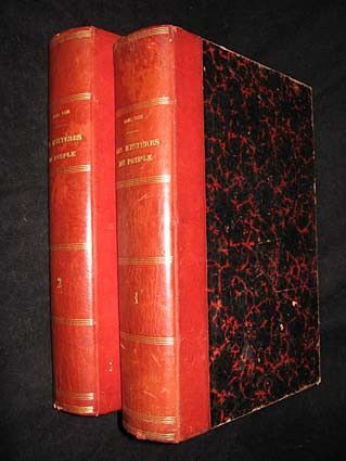 2 volumes in-4, (20x28 cm), relié demi-basane, dos titrés, sans date (vers 1880), texte sur 2 colonnes, 200 gravures en noir et blanc, 202 livraisons, la dernière étant la biographie d'Eugène Sue ; usures sur les bordures, plats légèrement frottés, assez bon état.