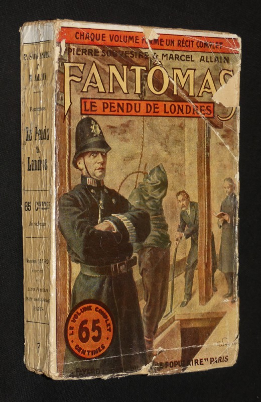 In-12 (12 x 18,5 cm.), broché populaire, couverture illustrée, 381 pages, '65 centimes le volume', série des "Fantômas" (n°7), sans date ; dos plissé, pliures, frottements et petits manques au premier plat, état correct toutefois pour ce type de publication très fragile.