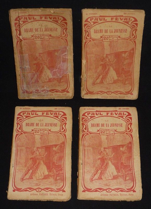 Ensemble complet de quatre volumes in-12 (11,8 x 18,5 cm), agrafés, 372 pages (total 4 tomes), sans date ; ensemble bruni, petites déchirures aux dos et sur les bords des plats, déchirures sans manque au premier plat du tome 1 réparées au ruban adhésif, état moyen.