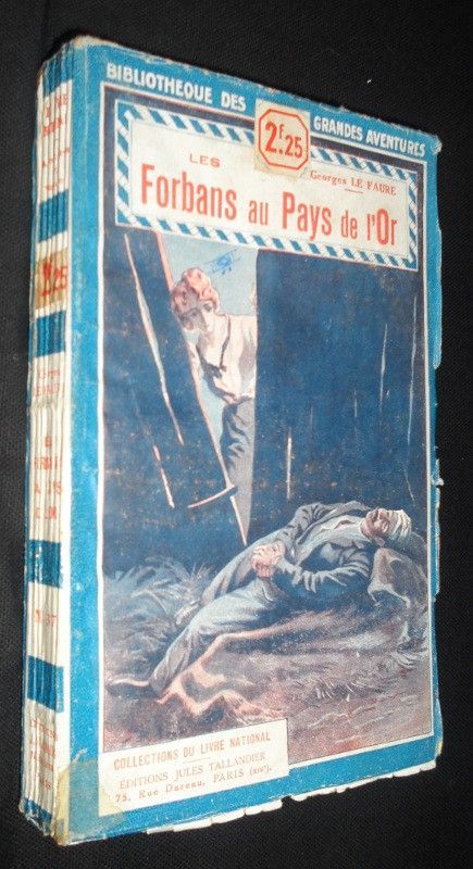 In-12 (12 x 18,5 cm.), format de poche, broché populaire, couverture illustrée, 256 pages, "Bibliothèque des Grandes Aventures" n°37, "Collections du Livre National", "Aventures et voyages", "2,25 f." ; dos à peine plissé et incurvé, menus manques aux coiffes et bords, plats un peu défraîchis, notes à la page de titre, par ailleurs bon état pour ce type de publication relativement fragile.
