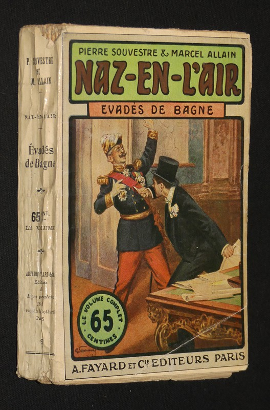 In-12 (12 x 18,5 cm.), broché populaire, couverture illustrée, 383 pages, '65 centimes le volume', série des "Naz-en-l'air" (n°9), sans date ; pliures au dos, coins cornés, par ailleurs bon état général pour ce type de publication très fragile.