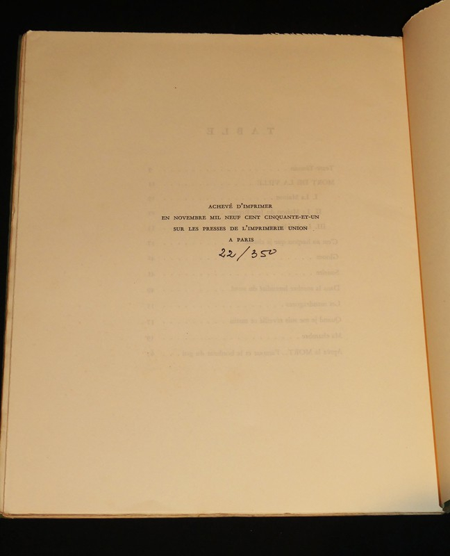 In-8 (15 x 22,5 cm), dos agrafé, sous chemise cartonnée reliée par un amateur, non paginé, illustrations en noir de Pierre Besson, tirage limité et numéroté ; rousseurs aux plats, contreplats...