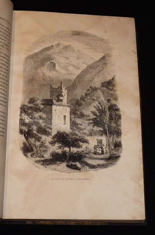 In-4 (19 x 27,5 cm), reliure demi chagrin à coins, dos à 5 nerfs orné de caissons dorés, tranches dorées, gardes couleur, VIII-418 pages, illustrations en noir de Calame ; dos un peu insolé, coupes frottées, mouillure au corps d'ouvrage en début et fin de volume, par ailleurs assez bon état.