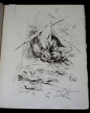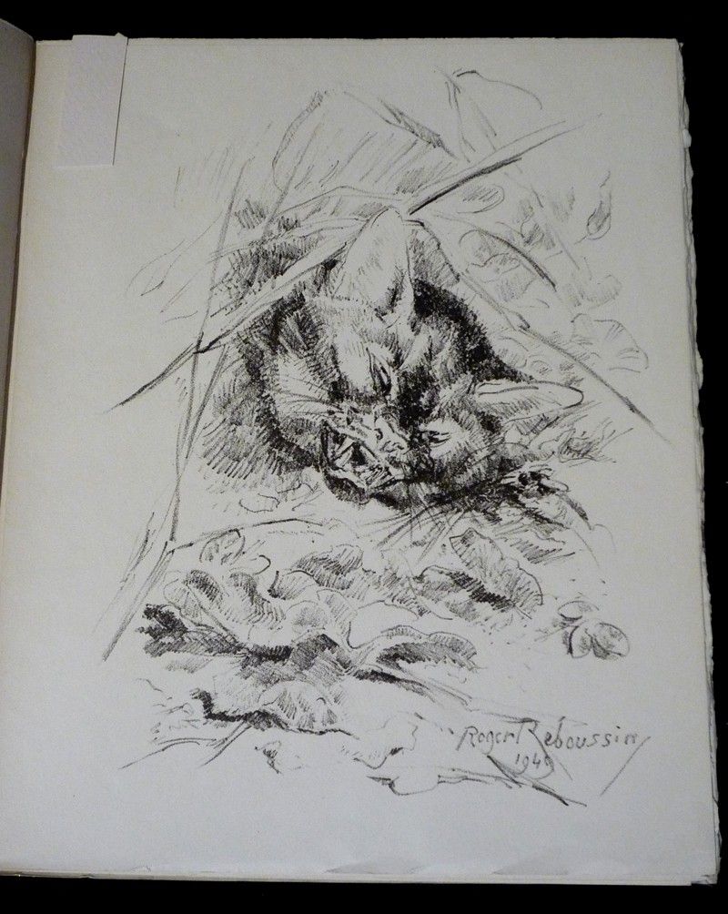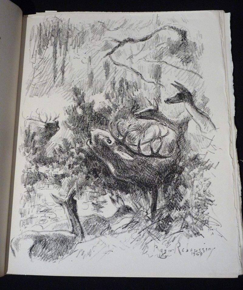 In-8 (19,7 x 24 cm), broché, 144 pages, 1 de 300 exemplaires sur vélin Annam, bien complet des 16 lithographies hors texte de Roger Reboussin. Recueil en trois grande section : l'eau, l'Arbre, la Bête, ce thème a été développé par l'auteur avec des extraits de : La Dernière Harde, Forêt voisine, Marcheloup, Rémi des Gauches et Rroû ; pliures sur le dos bruni, par ailleurs intérieur frais, bon état général.
