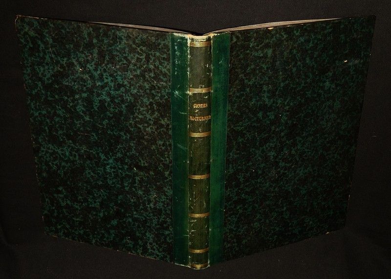 In-4 (21,3 x 30,3 cm), reliure demi-peau, dos lisse orné de filets dorés, ce volume contient les romans suivants : "Contes nocturnes" de Hoffman (24 pp.) // "L'Antiquaire" de Walter Scott (88 pp.) // "La Saint-Valentin" de Walter Scott (100 pp.) // "Les Puritains" de Walter Scott (88 pp.), sans date, illustrations en noir et blanc ; quelques épidermures sur le cuir, frottements aux coupes, rousseurs, quelques traces et mouillures à l'intérieur, état moyen.