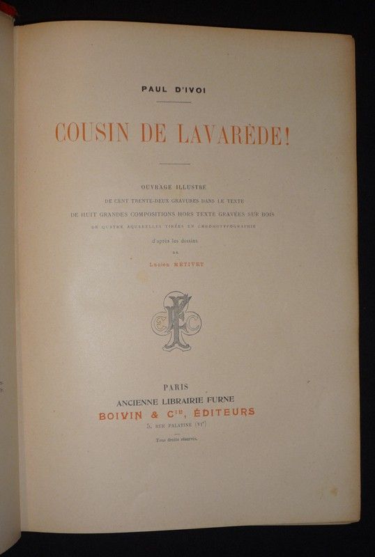 In-4 (22,5 x 31 cm), reliure pleine percaline, tranches dorées, 418 pages, sans date, gravures hors texte, 8 grandes compositions hors texte, 4 aquarelles tirées en chromotypographie d'après les dessins de Lucien Métivet ; un feuillet désolidarisé du corps d'ouvrage, coins et coiffes usées, mors supérieur fendu en tête, assez bon état général.