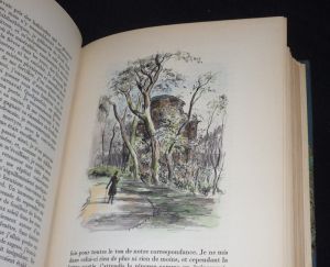 In-8 (17,5 x 22,5 cm), reliure demi-chagrin à coins, dos à 4 nerfs, tête dorée, gardes couleur, 276 pages, ouvrage orné de 40 aquarelles de Berthold Mahn ; dos décoloré, par ailleurs bel état.