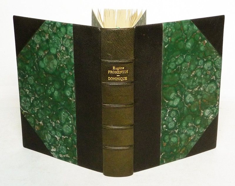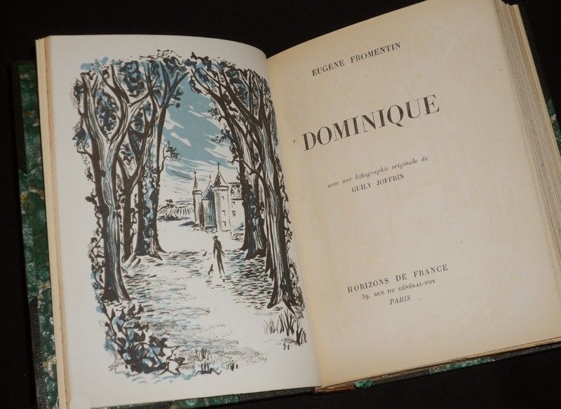 Petit in-8 (15 x 19,5 cm), reliure demi-chagrin à coins, dos à 5 nerfs, gardes couleur, ex-libris de F. & G. Bonn, couverture conservée, 256 pages, 1 des 100 exemplaires sur vélin du Marais, avec une lithographie originale de Guily Joffrin en regard de la page de titre ; dos insolé, par ailleurs bel état.