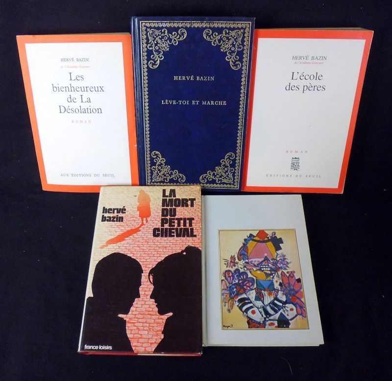 Lot de cinq volumes in-8 (14 x 21,5 cm. max), 3 dos reliés, "Lève-toi et marche" (316 pages - 1977), "Chapeau bas" (250 pages - 1971 - plats illustrés), "La mort du petit cheval" (311 pages - 1975 - sous jaquette illustrée), 2 dos brochés "L'école des pères" (345 pages - 1991), "Les bienheureux de la désolation" (246 pages - 1970) ; 1 dos plissé et incurvé, par ailleurs bon état d'ensemble.