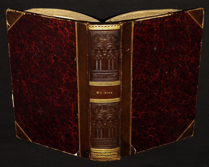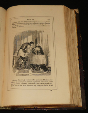In-4 (18 x 27,7 cm), reliure demi-basane à coins, dos lisse orné d'ors et d'un décor estampé à froid "à la cathédrale", 972 pages, illustrations en noir de Jean Gigoux ; frottements sur le cuir aux mors, coiffes et coins, coupes frottées, quelques usures au papier reliure aux plats, rousseurs en début et fin de volume, mouillure à la première garde et au faux-titre, note personnelle manuscrite au faux-titre, par ailleurs assez bon état général.