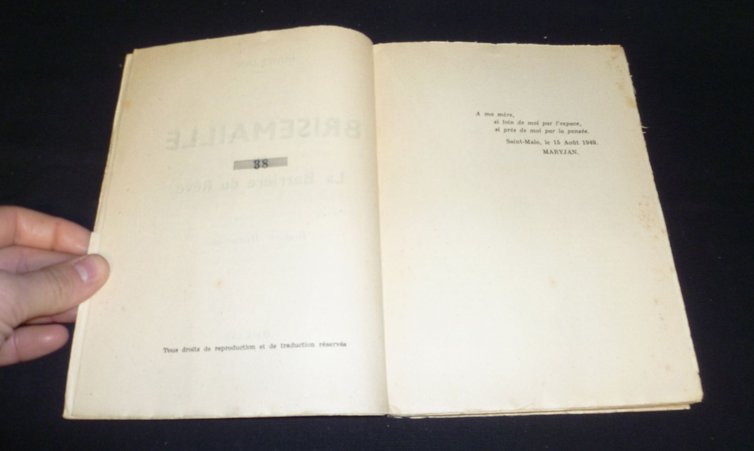 In-8 (14.5 x 19.5 cm), broché, 158 pages, édition originale de 1949, exemplaire numéroté, n°38, épuisé et introuvable excepté en numérique, non rogné ; l'ouvrage est équipé d'un protège-livre, plis au dos, coiffes et bords frottés, mors fendus, menues rousseurs en début et fin d'ouvrage, des marques d'usage sur la couverture, par ailleurs intérieur frais, assez bon état général.