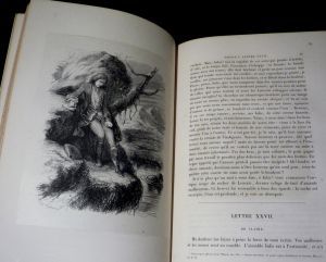 Deux volumes in-4 (18,7 x 27,7 cm), reliure demi-peau, dos lisses ornés de filets, du titre et de la tomaison dorés, 375 et 369 pages, gravures sur papier fort hors texte (exemptes de rousseurs), vignettes par MM. Tony Johannot, E. Wattier, E. Lepoitevin, H. Baron, Karl Girardet, C. Rogier, etc. ; manque de cuir sur le dos du tome 1 en queue, mors supérieur du tome 1 et tome 2 fendus respectivement en tête et en queue, coiffes usées, coupes et coins frottés, état moyen.