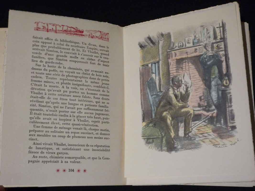 In-12 (14,5 x 19,5 cm), feuilles sous chemise et emboîtage cartonnés, 268 pages, 1 de 500 exemplaires sur Annam, illustration rehaussées de pochoirs, bandeaux et têtes de chapitres d'après les illustrations de Pierre Noël ; très bon état.