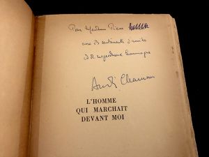 In-12 (12.2 x 19 cm), broché, 233 pages, envoi de l'auteur à la fausse page de titre ; l'ouvrage est équipé d'un protège-livre, réparations au ruban adhésif à cheval sur le dos fendu et déchiré, manques à la coiffes inférieure et l'angle du 1er plat en tête et aux dernières pages, couverture défraîchie, en l'état.