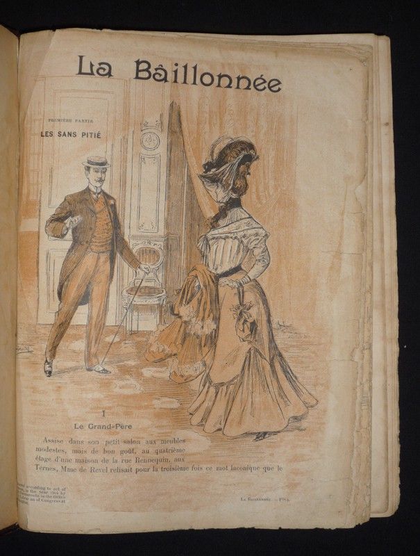 In-4 (23,5 x 29 cm), reliure demi-peau, 811 pages, réunion des fascicules de "La Bâillonnée" de Pierre Courcelle, imp. Davoust, bien complet, illustrations monochromes ; usures aux plats et coupes, quelques épidermures sur le cuir, tranches brunies, par ailleurs assez bon état général.