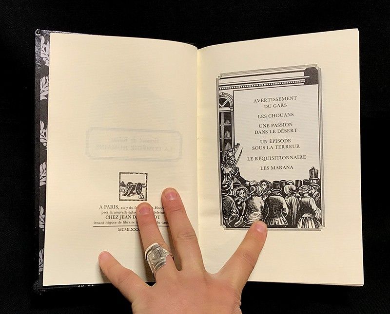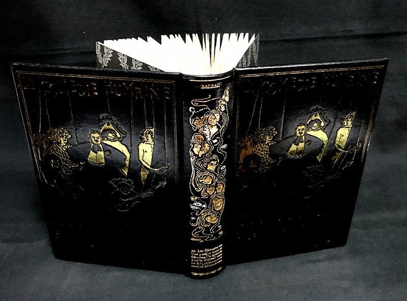 In-8 (15 x 23,2 cm), reliure demi-peau, dos à cinq nerfs, pièce de titre, 456 pages, truffés de dessins en couleur issus d'une autre édition de "Stello" ; dos insolé, mouillure en queue sur la...