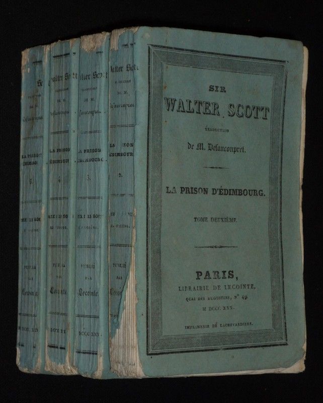 Quatre volumes in-12 (9 x 14,5 cm), brochés, tomes 2 à 5 sur 5 de cette série, 267, 245, 253 et 269 pages ; mors et coiffes usés, mors fendus recollés et manque à la coiffe inférieure au tome 2, quelques traces sur les plats, mouillure en fin du tome 5 et début du tome 2, par ailleurs assez bon état général.