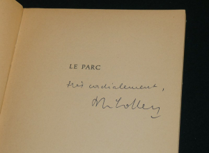 In-12 (13 x 18,5 cm), broché, 154 pages, édition originale avec bandeau d'édition et envoi de l'auteur ; volume bruni notamment au dos, pliures d'usage au dos, mors légèrement fendus aux coiffes, par ailleurs assez bon état.