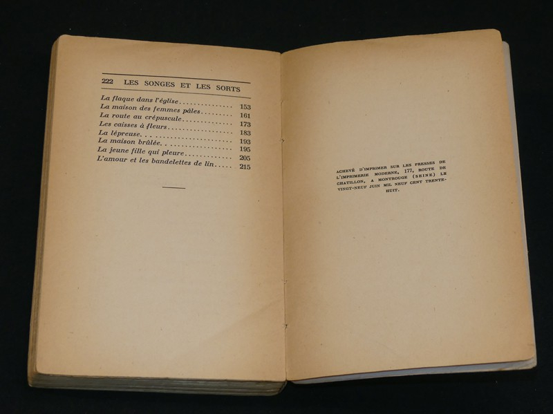 PREMIERE EDITION. In-12 (12 x 18,8 cm), broché, 222 pages, rare exemplaire, même les tirages sur papier d'édition sont rares avant la guerre ; pliures au dos, bord du quatrième plat et dos brunis, quelques traces et marques d'usage sur les plats, ex-libris manuscrit, par ailleurs assez bel exemplaire.