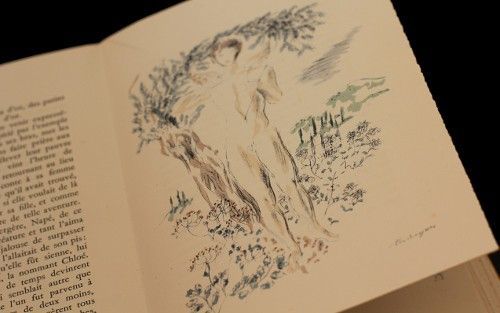 Deux volumes in-4 (19.5x28 cm), feuilles non coupées sous couvertures rempliées, sous chemises cartonnées et emboîtage, illustrations couleurs de Louis Touchagues, traduction d'Amyot revue par P. L. Courrier ; rares rousseurs à l'intérieur, rousseurs sur les plats, chemises et emboîtage frottés aux coiffes et mors, bon état.