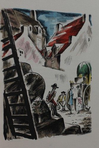 In-8 (19x24 cm), broché, couverture rempliée, 246 pages, d'après l'édition d'Amsterdam 1753, envoi de Robert Bonfils, exemplaire nominatif, un des 23 exemplaires lettrés de A à X, exemplaire D, papier Vélin d'Arches, 22 lithographies de Robert Bonfils, couleurs par Charpentier ; pliures et fissures au dos insolé, coiffes frottées, traces de frottement et rayures sur le 4e plat, mors antérieur fendu (recollé), intérieur frais, assez bon état.