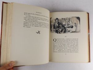 In-8 (18,5 x 23 cm.), relié demi-chagrin à coins sous emboîtage, titre et auteur dorés au dos à 4 nerfs, 215 pages, couverture conservée, tranche de tête rouge, têtes de chapitres couleurs, illustrations couleurs de Charles Fouqueray, tranchefile, non-rogné ; dos insolé, menus incidents à la couverture, par ailleurs très bon état.