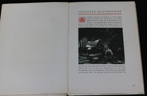 In-8 (17x25.5 cm), broché non coupé sous chemise cartonnée et sous emboîtage, 274 pages, un des 800 exemplaires sur vélin des papeteries de Ruysscher (n°307), illustrations en couleurs dessinées et gravées sur bois par André Collot ; dos jauni et sali, mors abîmé (scotch), rousseurs sur les plats et sur l'emboîtage jauni et sali, intérieur très frais, bel état.