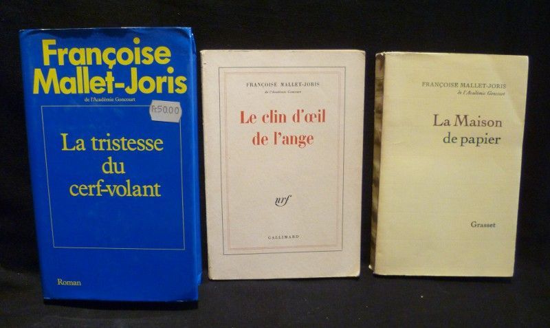 Trois volumes in-8 (13,5 x 20,5 cm.) brochés et (14 x 23 cm.) cartonné sous jaquette, 1. La maison de papier (272 pages - 1970 - couverture à rabats), 2. Le clin d'oeil de l'ange (261 pages - 1983), 3. La tristesse du cerf-volant (384 pages - 1988) ; menus incidents aux plats/ à la jaquette, 3. coiffes, mors et coins frottés, bon état d'ensemble.