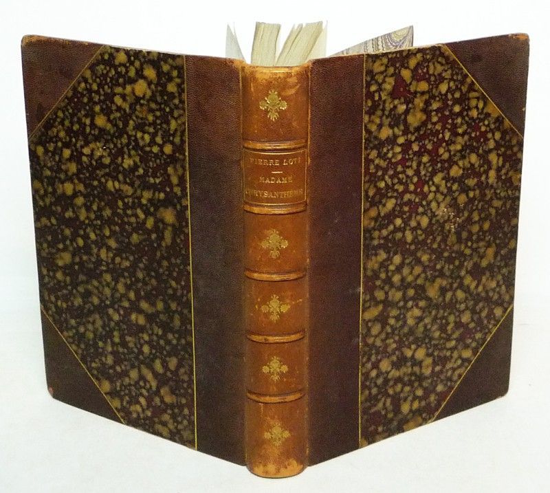 In-8 (16,5 x 23,5 cm), reliure demi-chagrin à coins, dos à 5 nerfs orné de fleurs dorées, filets dorés sur les plats, tête dorée, gardes couleur, ex-libris de F. & G. Bonn, couverture illustrée conservée, 328 pages, illustrations en noir dans le texte ; premier plat un peu fragilisé, mors supérieur fendu en tête, épidermures sur le cuir, coins usés, par ailleurs assez bon état.