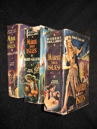 3 volumes in-8, (14x21.5 cm), brochés sous jaquettes illustrées couleur par Brantonne, contient : Maris des Isles (954 pages), Marie-Galante (802 pages), Capitaine le Fort (691 pages) ; petits manques sur les jaquettes, tranches légèrement piquées, assez bon état.