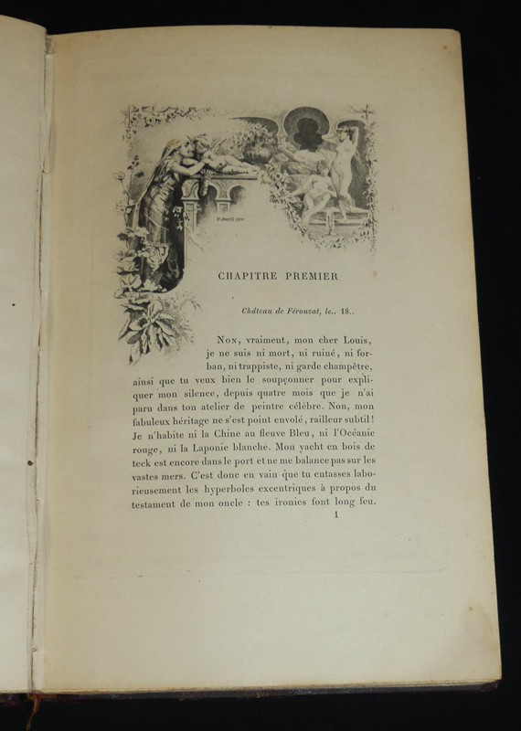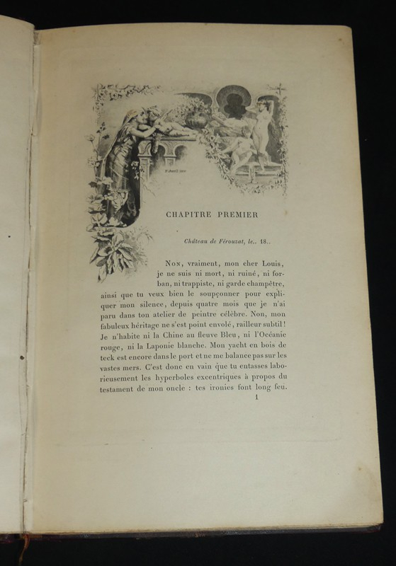 In-8 (17,5 x 25,5 cm), reliure demi-basane à coins, 311 pages, exemplaire sur beau papier, illustré d'eaux fortes de Paul Avril ; coiffes et coins usés, épidermures sur le cuir, quelques trace et une épidermure papier aux plats, par ailleurs intérieur bien conservé, assez bon état général.