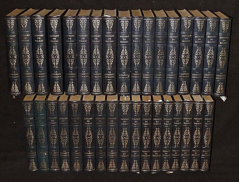 Trente-quatre volumes in-12 (13 x 20,6 cm), reliure cartonnée de l'éditeur, dorures sur les premiers plats et les dos, préfaces et notes de Roland Chollet, portrait de Balzac en frontispice de chaque volume, cet ensemble comprend les tomes 1 à 37 (SAUF les tomes 19, 27 et 28) qui contiennent La Comédie Humaine (Tomes 1 à 29) et les Romans de jeunesse (Tomes 30 à 37) ; marques d'usage et traces sur les plats, rousseurs aux tranches notamment les tranches supérieures, assez bon état général.