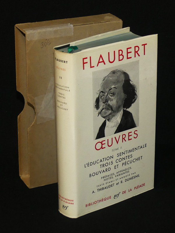 In-12 (11 x 17,5 cm), reliure d'éditeur pleine peau sous jaquette, rhodoïd et étui muet, 1054 pages, ce volume contient : L'Education sentimentale - Trois contes - Bouvard et Pécuchet, texte établi et annoté par A. Thibaudet et R. Dumesnil ; étui réparé au scotch papier, bel exemplaire.
