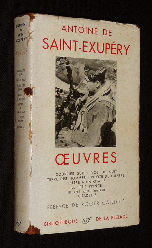 In-12 (11 x 17,5 cm), reliure d'éditeur sous jaquette, 993 pages, ce volume contient : Courrier Sud - Vol de nuit - Terre des hommes - Pilote de guerre - Lettre à un otage - Le Petit Prince - Citadelle ; coupes usées, petites déchirures aux mors en tête, jaquette abîmée (déchirures sur les bords, trou au mors supérieur, rousseurs aux plats et rabats), en l'état.