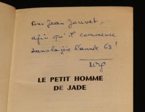 In-12 (11 x 17,8 cm), broché, 251 pages, édition originale, envoi de l'auteur, 1 des 130 exemplaires numérotés réservés aux amis de l'auteur et à la presse ; pliure au dos de biais, coiffes frottées, par ailleurs assez bon état.