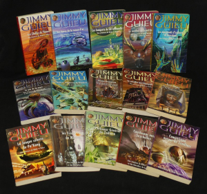 Cent-trente-et-un volumes in-12 (10,8 x 18 cm), dos carré collé, lot de 131 volumes de la série "SF Jimmy Guieu", comprenant les numéros suivants : 1 à 27 (sauf 22) // 30 // 32 à 42 (sauf 38) // 44 à 95 (sauf 76) // 97 // 99 // 102 // 103 // 105 à 129 (sauf 109) // 131 // 132 // 134 à 152 ; marques d'usage variables selon le volume (pliure au dos, frottements aux mors / coiffes / coins / bordures des plats), par ailleurs bel état d'ensemble.
