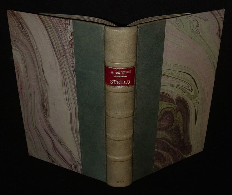 In-8 (15 x 23,2 cm), reliure demi-peau, dos à cinq nerfs, pièce de titre, 456 pages, truffés de dessins en couleur issus d'une autre édition de "Stello" ; dos insolé, mouillure en queue sur la première moitié du corps d'ouvrage, par ailleurs assez bon état général.