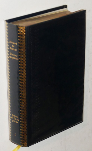 Vingt-quatre volumes in-8 (15 x 21,8 cm), reliure pleine peau des Ateliers Boutan-Marguin, dos lisses ornés d'un décor doré, têtes dorées, illustrations en noir et blanc hors texte, ensemble complet : Tome 1 à 4 : Scènes de la vie privée ; Tomes 5 à 7 : Scènes de la vie de province ; Tomes 8 à 11 : Scènes de la vie parisienne ; Tome 12 : Scènes de la vie politique - Scènes de la vie militaire ; Tome 13 : Scènes de la vie de campagne ; Tomes 14 à 16 : Etudes philosophiques ; Tome 17 : Etudes analytiques ; Tome 18 : Contes drôlatiques ; Tomes 19 et 20 : Théâtre ; Tome 21 à 24 Oeuvres diverses ; minimes marques de frottements sur les rhodoïds, très bel état.