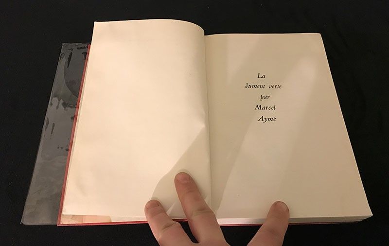 In 12 (12 x 18 cm), toile d'éditeur rouge sous rhodoïd, 1er plat illustré, 288 pages, exemplaire n°5259 tiré sur papier Vélin de Condat ; grosse déchirure au rhodoïd au 1er plat, grosse mouillure au 4ème plat du rhodoïd et à la dernière garde et 4ème plat, par ailleurs intérieur frais, assez bon état général.