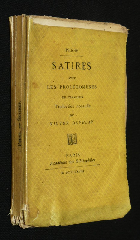 In-16 (7x12 cm), broché, 143 pages, un des 515 exemplaires sur papier Vergé de Hollande, n°151, traduction nouvelle par Victor Develay, une gravure en frontispice, bandeaux, lettrines et culs-de-lampe ; fissures au dos, petit manque à la coiffe inférieure frottée, petites déchirures au 1er plat, grandes marges, intérieur frais, assez bon état.