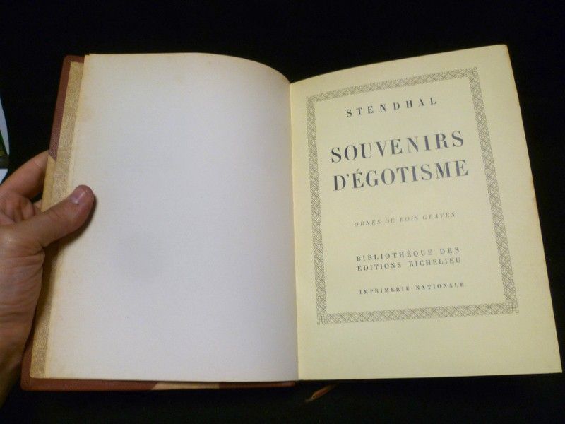 In-8 (17x22.5 cm), relié demi-basane à coins, couverture d'origine conservée,404 pages, exemplaire n°1372/2975 tiré sur papier Alfa Ivoire, ouvrage orné de bois gravés (dessins de Henri Jadoux gravés par Renaud), texte établi et annoté par Pierre Martino, ex libris au 2ème plat 'F. et G. Bonn' ; coiffes légèrement frottés, minuscules taches d'usage au 4ème plat, petites rousseurs aux gardes, par ailleurs bel état.