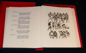Deux volumes in folio, en feuilles sous emboitages : le premier comprenant 'Faust' de 230 pp. avec 80 illustrations de Robert BELTZ dont un frontispice gravées sur bois par Gilbert Poilliot, un des exemplaires hors-commerce signé par Robert BELTZ dédicacé à Maurice Hermann ; le second comprenant le texte original de 120 pp. ainsi que 'Intermède' de 16 pp. illustré + VII pp. de Robert Beltz intitulées 'Le cabinet d'études - Le pentagramme et le nombre d'or' ; emboitages présentant d'infimes taches, très bel exemplaire