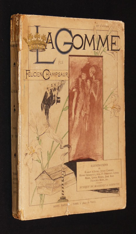 In-8 (16 x 21,7 cm), broché, 218 pages, illustrations de Caran d'Ache, Jules Chéret, Henry Gerbault, Louis Morin, Félicien Rops, etc. ; manque au dos en tête et dans les coins des plats, quelques rousseurs aux plats, petites pliures et déchirures sur les bords des plats, par ailleurs assez bon état général.