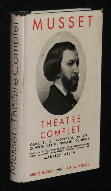 In-12 (11 x 17,5 cm), reliure d'éditeur avec jaquette, 894 pages, introduction, chronologie des pièces, notes et variantes, texte établi et annoté par Maurice Allem, ce volume contient : Comédies et proverbes - Théâtre complémentaire - Théâtre posthume - Fragments - Pièce attribuée à Musset - Pièces projetées par Musset ; frottements aux mors, coiffes et coins de la jaquette, quelques rousseurs aux plats de la jaquette, angles des coiffes frottés, petite tache sur la tranche, par ailleurs assez bon état.