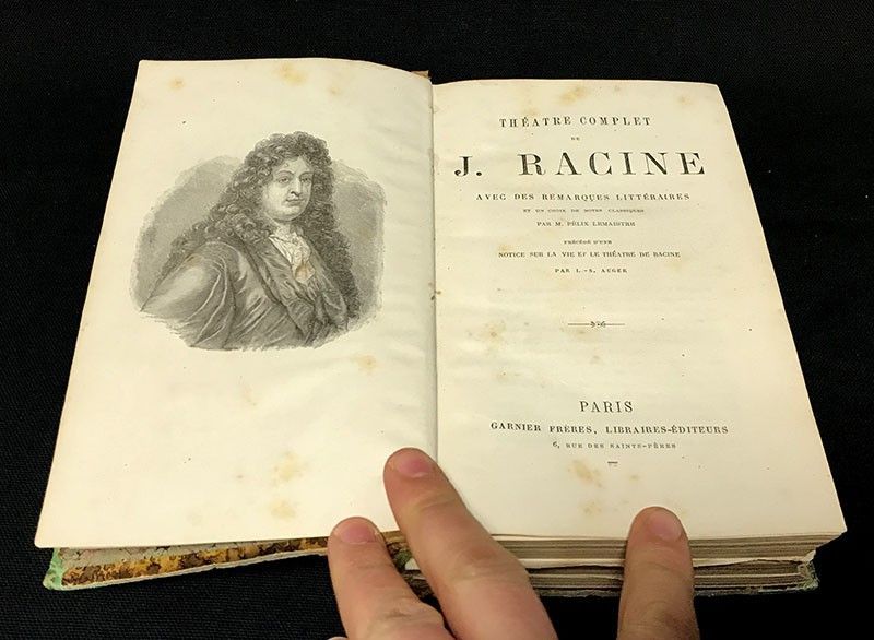 In-12 (12,5 x 18,5 cm), reliure demi-chagrin, dos à 5 nerfs, XII-740 pages, notes par Félix Lemaistre, notice sur la vie et le théâtre de Racine de L.-S. Auger ; épidermures sur le cuir, coiffes, dos et coupes frottées, plats frottés, rousseurs éparses, tranches brunies, assez bon état général.