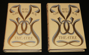 Coffret deux volumes in-8 (17 x 23,7 cm), cartonnés, 508 et 522 pages, édition illustrée en couleurs d'après les maquettes de décors et de costumes des créations, ces volumes comprennent : Siegfried - La Fin de Siegfried - Amphitryon 38 - Judith - Intermezzo - Tessa - La Guerre de Troie n'aura pas lieu - Electre - Supplément au voyage de Cook - L'Impromptu de Paris - Cantique des cantiques - Ondine - Sodome et Gomorrhe - La Folle de Chaillot - L'Apollon de Bellac - Pour Lucrèce ; étui un peu sali, légère pliure aux dos, par ailleurs bon état général.