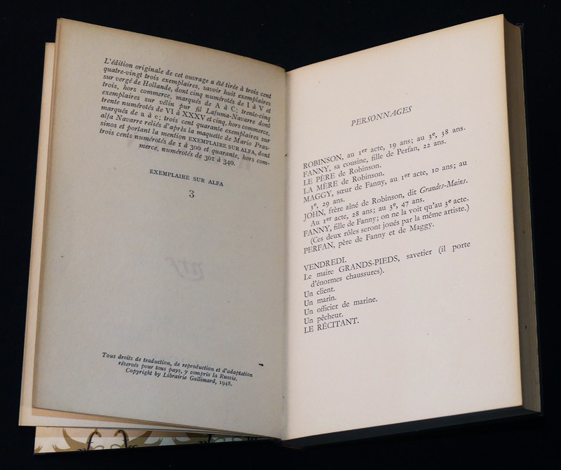 In-8 couronne, cartonnage décoré de l'éditeur d'après une maquette de Mario Prassinos, Édition originale, 182 pp., 1 des 340 sur Alfa (3) ; tranches jaunies, bel exemplaire....