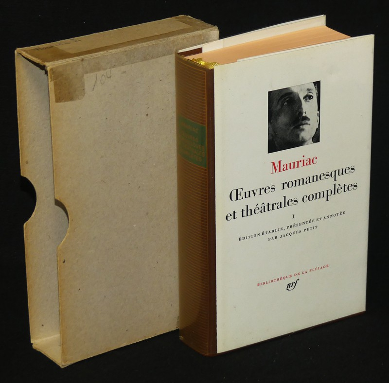 In-12 (11 x 18 cm) reliure pleine peau de l'éditeur sous demi-jaquettes illustrées, rhodoïd et étui muet, signets jaunes, CXIII-1415 pages, annotation de Jacques Petit, ce volume contient : L'Enfant chargé de chaînes - La Robe prétexte - La Chair et le sang - Préséances - Le Visiteur nocturne - Le Baiser au lépreux - Le Fleuve de feu - Génitrix - Le Mal - Le Désert de l'amour - Un Homme de lettres - Coups de couteau. Appendices : Va-t'en - Les Nuits de Paris - Les Beaux esprits de ce temps - Le Retour en Gascogne - La Paroisse morte - Dialogue d'un soir d'hiver - Préfaces des œuvres complètes ; bel état.