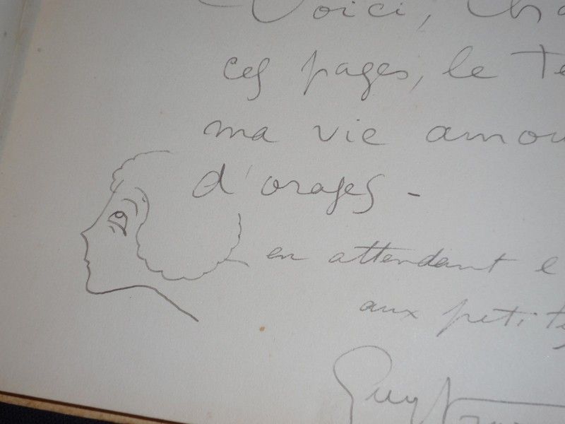 In-4 cartonné illustré couleurs, 10 textes de René Kerdyk, tous accompagnés d'une image hors-texte couleurs sur papier vert d'eau de Guy Arnoux, notre exemplaire est un exemplaire d'artiste, non justifié, il porte par ailleurs deux pleines pages d'envoi, poèmes et DESSINS ORIGINAUX de Guy Arnoux ; couverture légèrement brunie, bel exemplaire pour ce charmant et unique ouvrage.