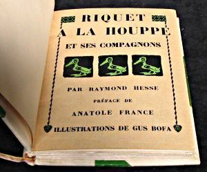 Petit in-12 carré relié, reliure à la Bradel, dos lisse, une illustration couleurs sur le dos, tête dorée, couverture et dos conservé, 161 pp., préface d'Anatole France, nombreuses illustrations de Gus Bofa ; excellent état.